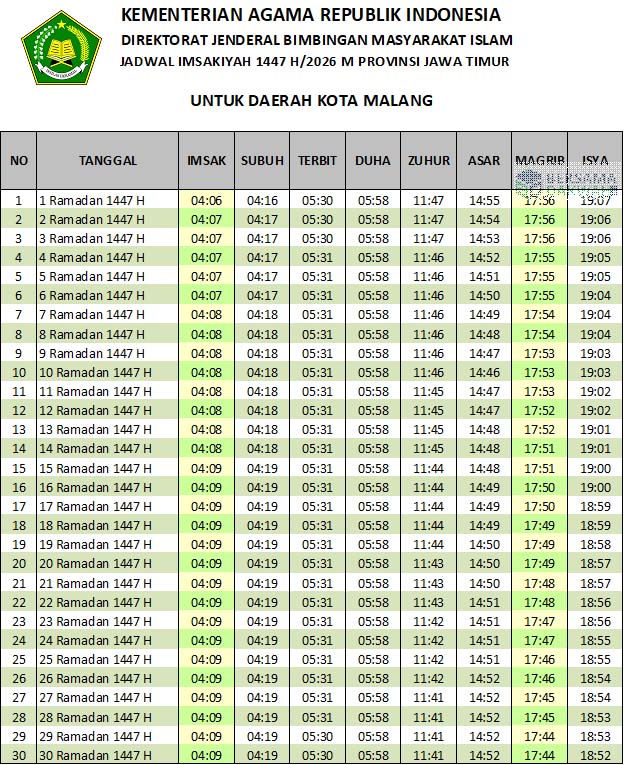 Jadwal Imsakiyah Malang Ramadhan 2026